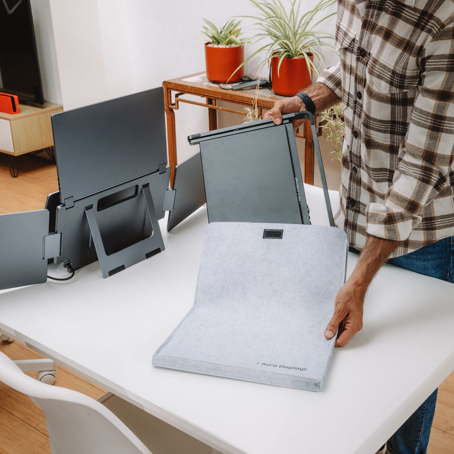 Portable monitors are an alternative to external monitors. They provide the advantage of being easy to transport, so you can also toss them in your laptop bag when traveling.