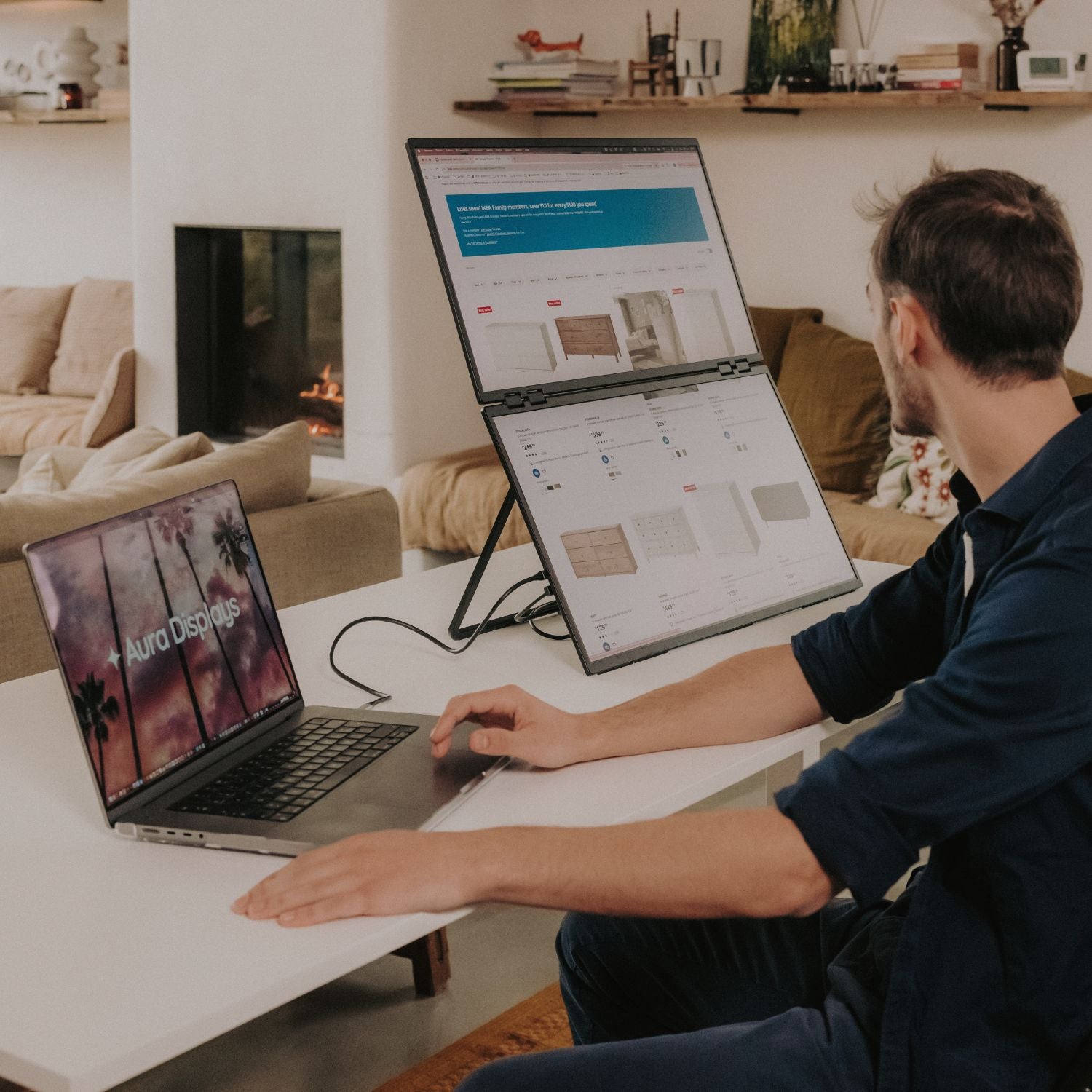 — 🇨🇦 Paul M. Verified Spectacular. The hinges feel a touch unstable when unfolding the screens, but it's actually quite sturdy. The USB-PD design is quite useful, the screens and my MacBook can run on a single power input through the screens.