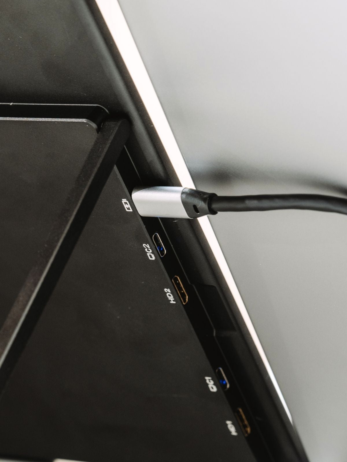 Since HDMI only carries the image, the monitor must also be powered separately, either through a USB-C connection or an external power supply.