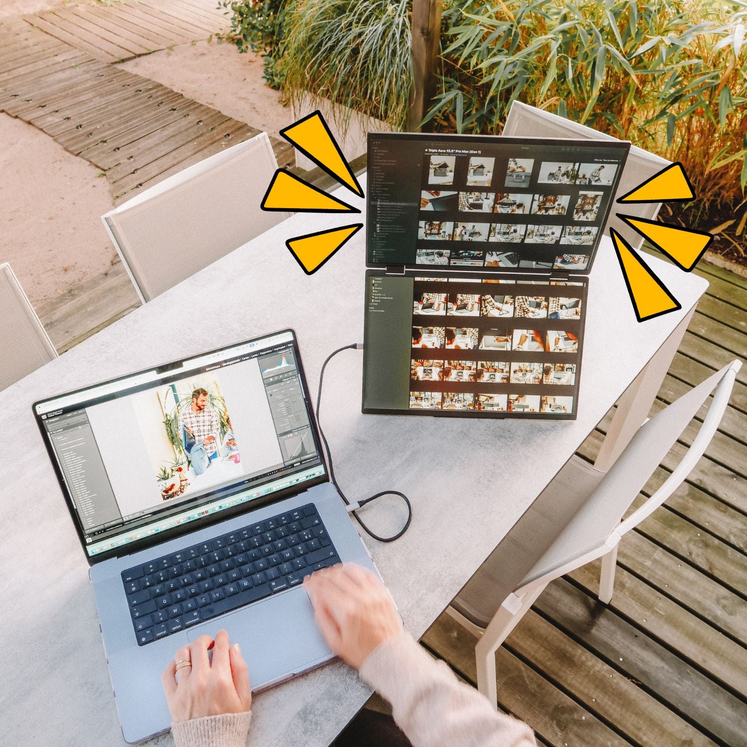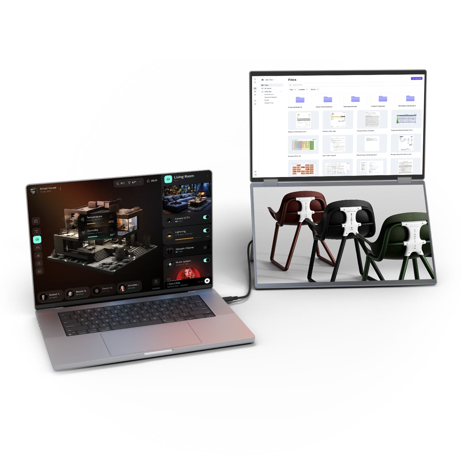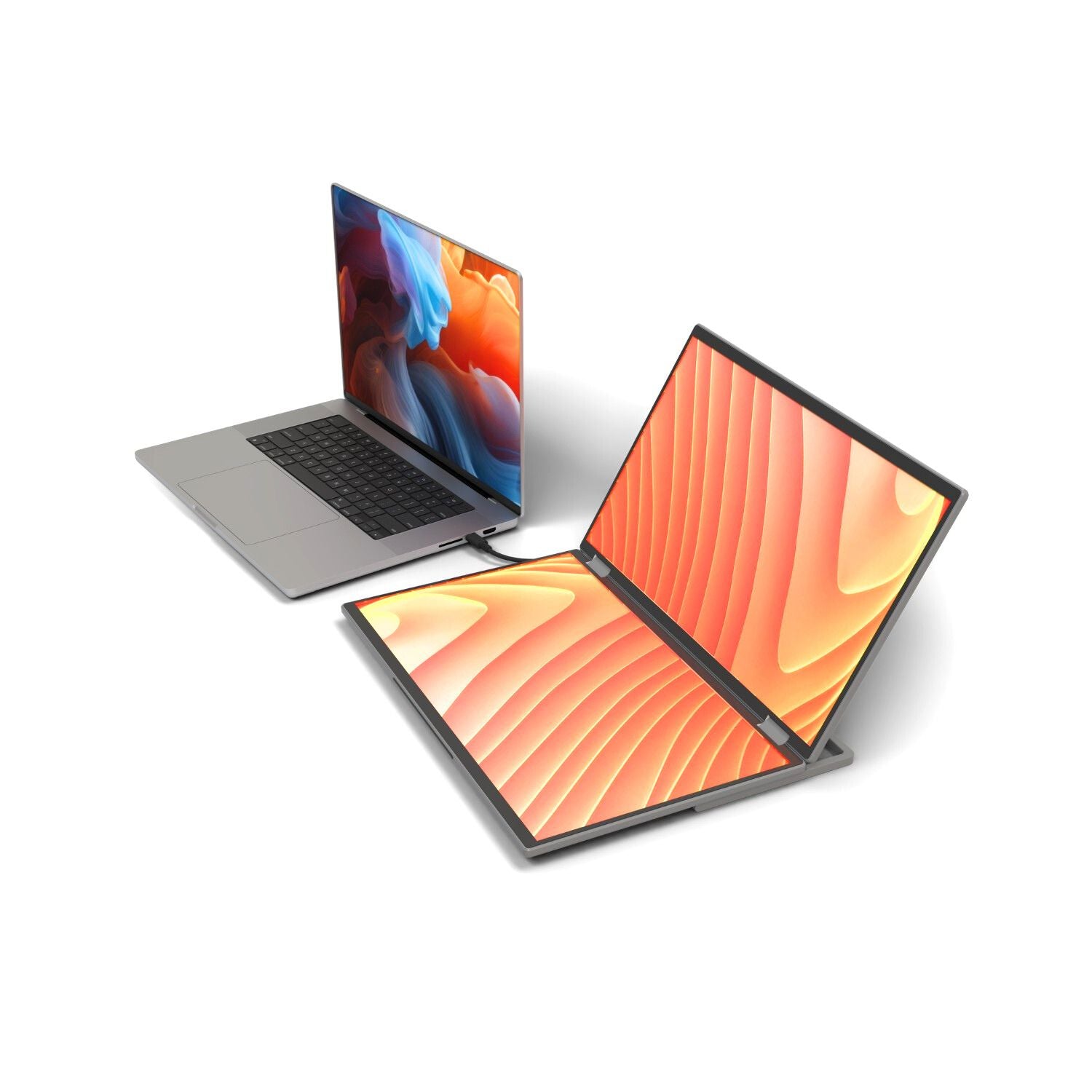 Only one USB-C cable connected to your laptop is needed to transmit video and activate the screens.