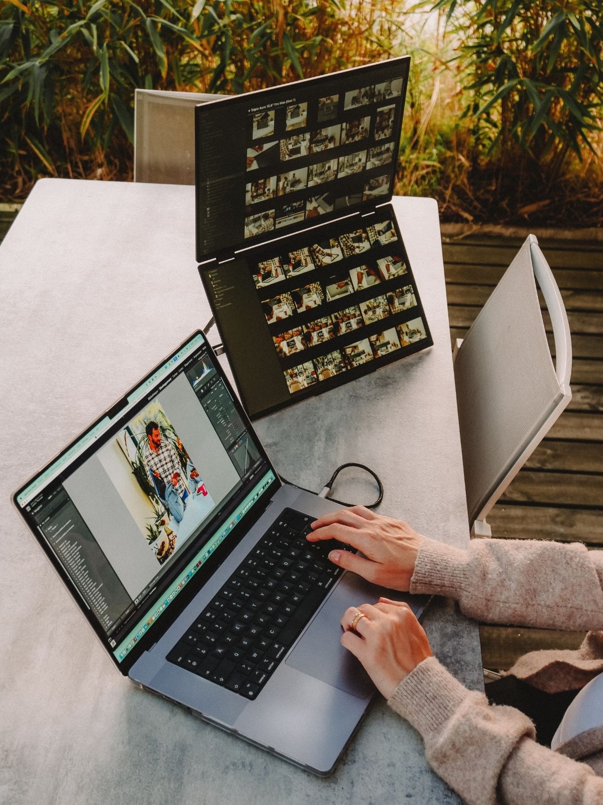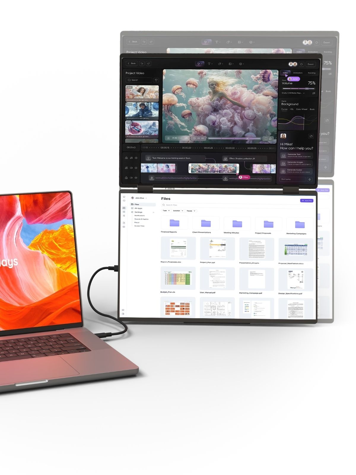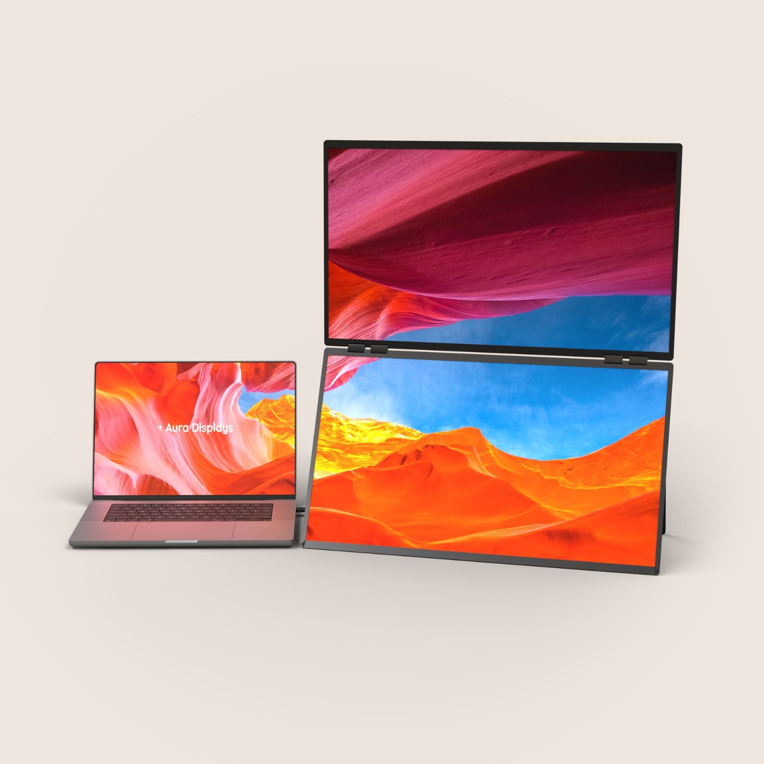 Only one USB-C cable connected to your laptop is needed to transmit video and activate the screens.