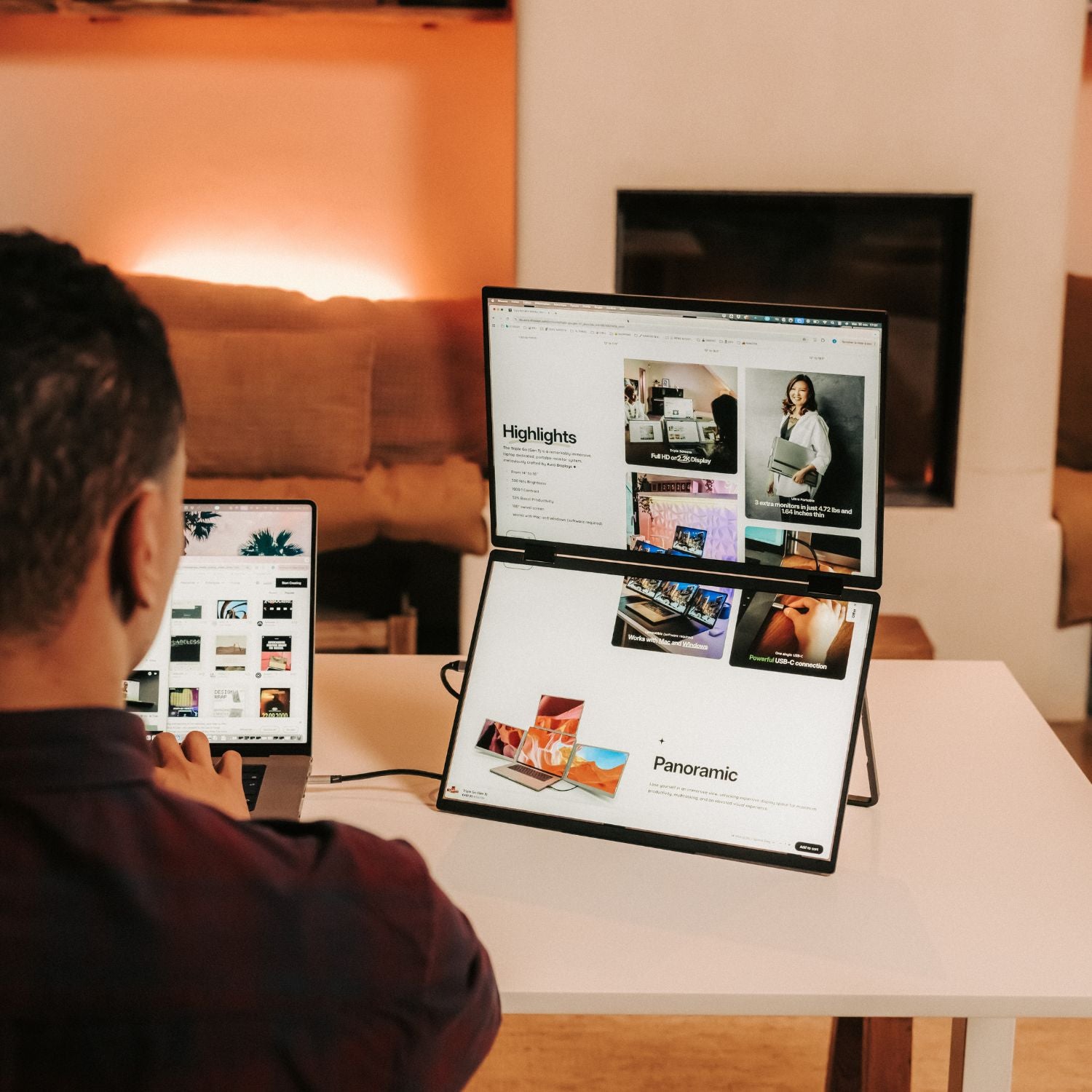 With Fold Mode, your portable monitor transforms into a compact, dual-display workstation in seconds. Simply unfold the screens and position them flat on your desk for a clean, immersive setup that feels like a true desktop environment.