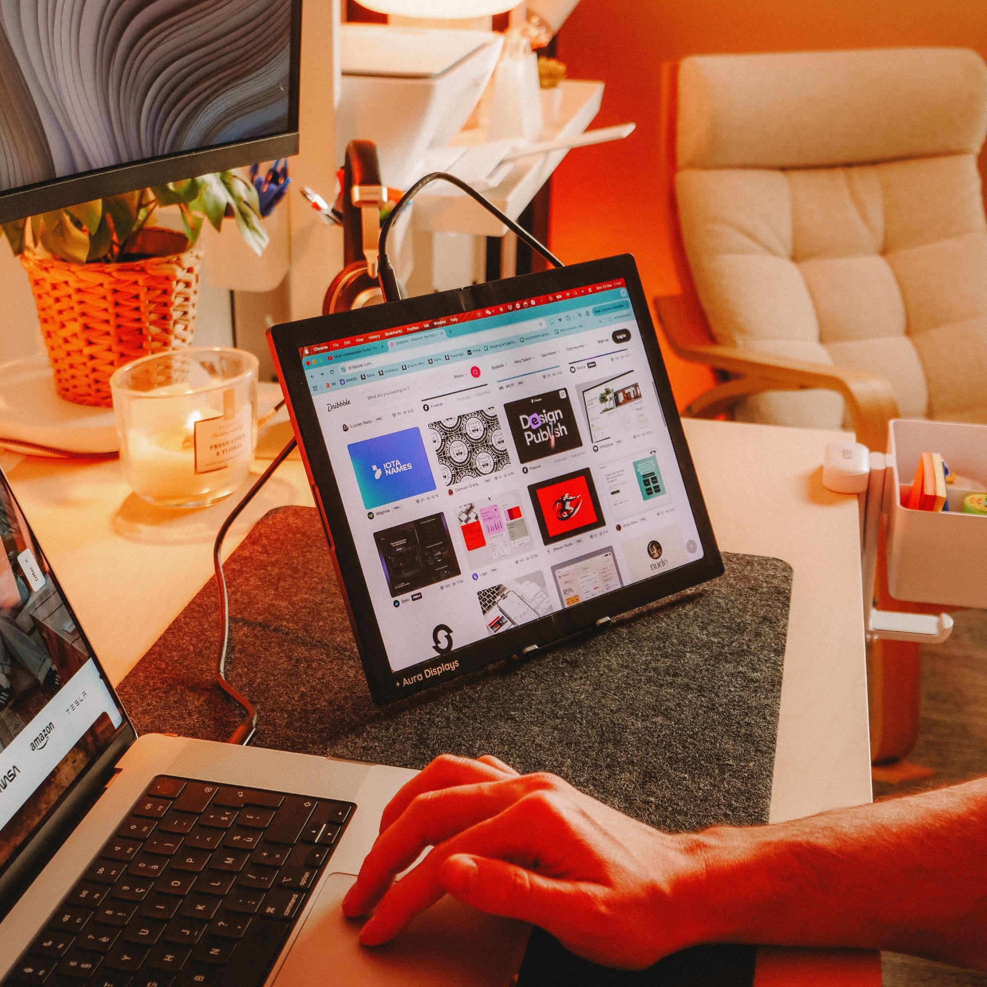 Use just one screen for a minimal setup, or activate the second display to instantly expand your workspace.
