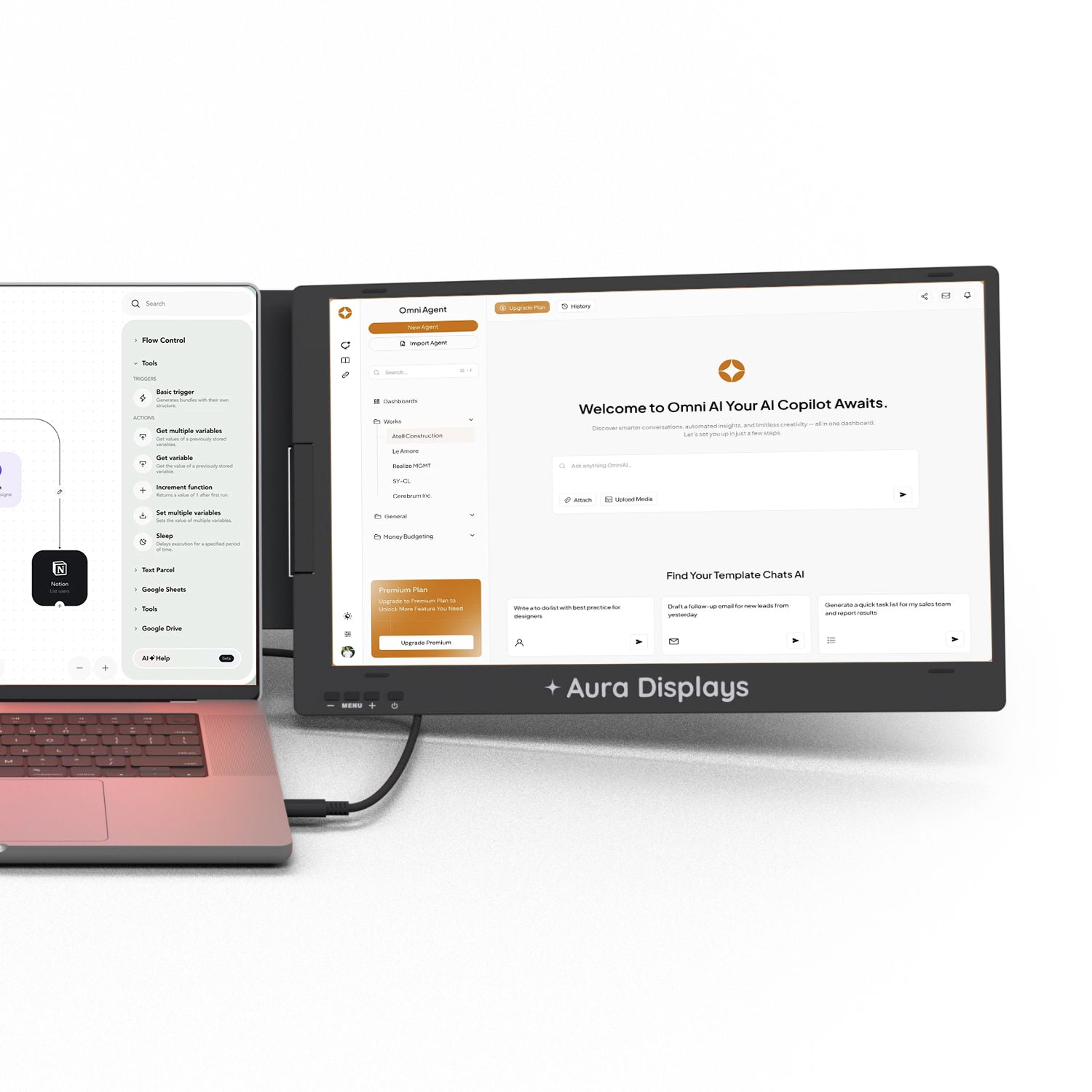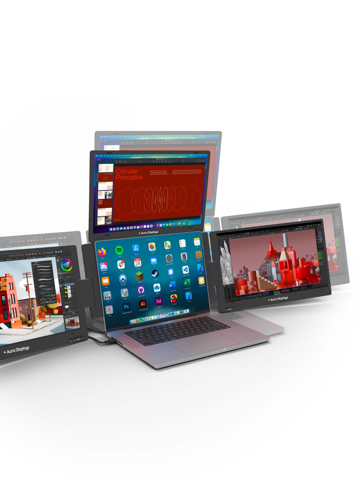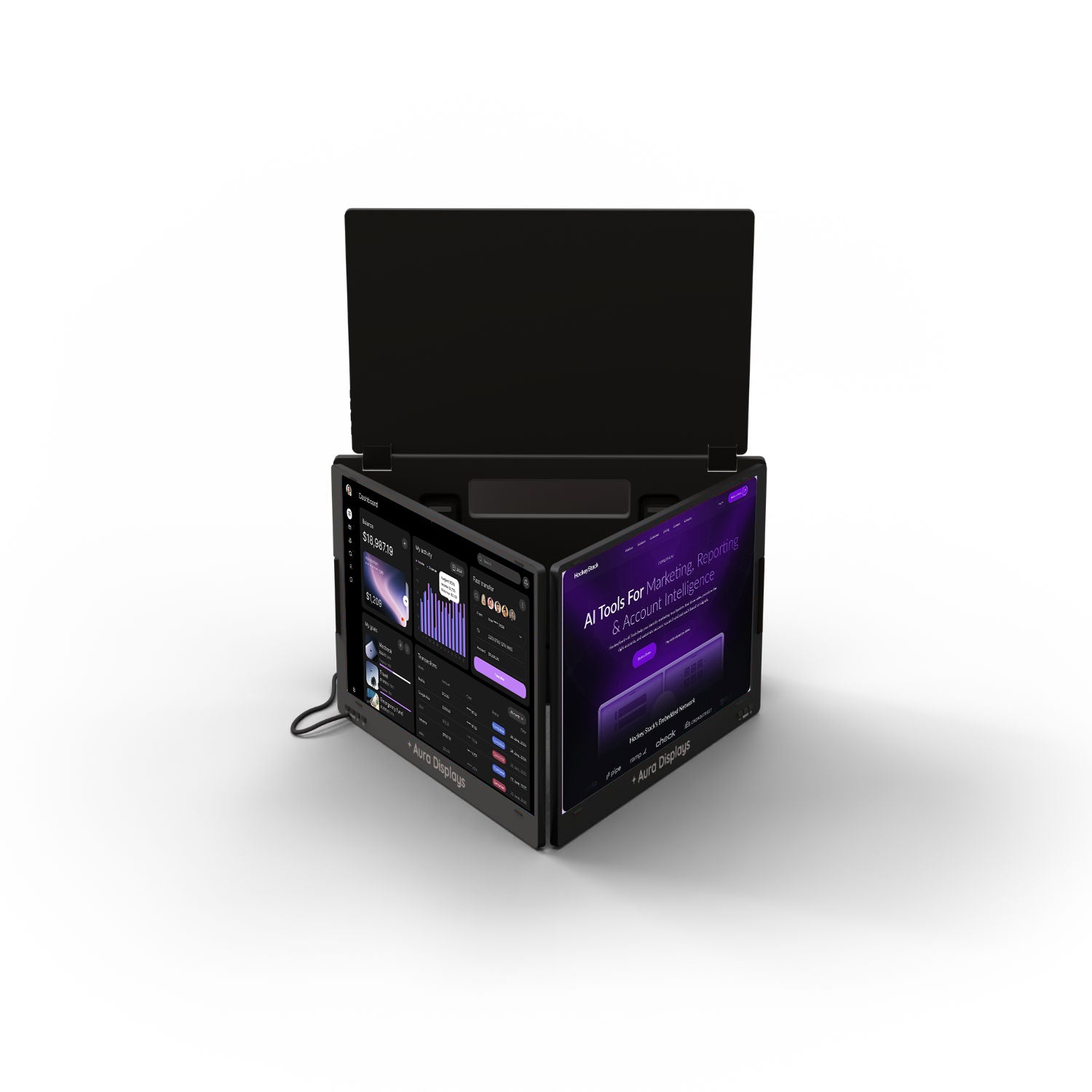 The Triple Boost Pro (Gen 2) is a remarkably immersive, laptop dedicated, portable monitor system, meticulously crafted by Aura Displays ✦