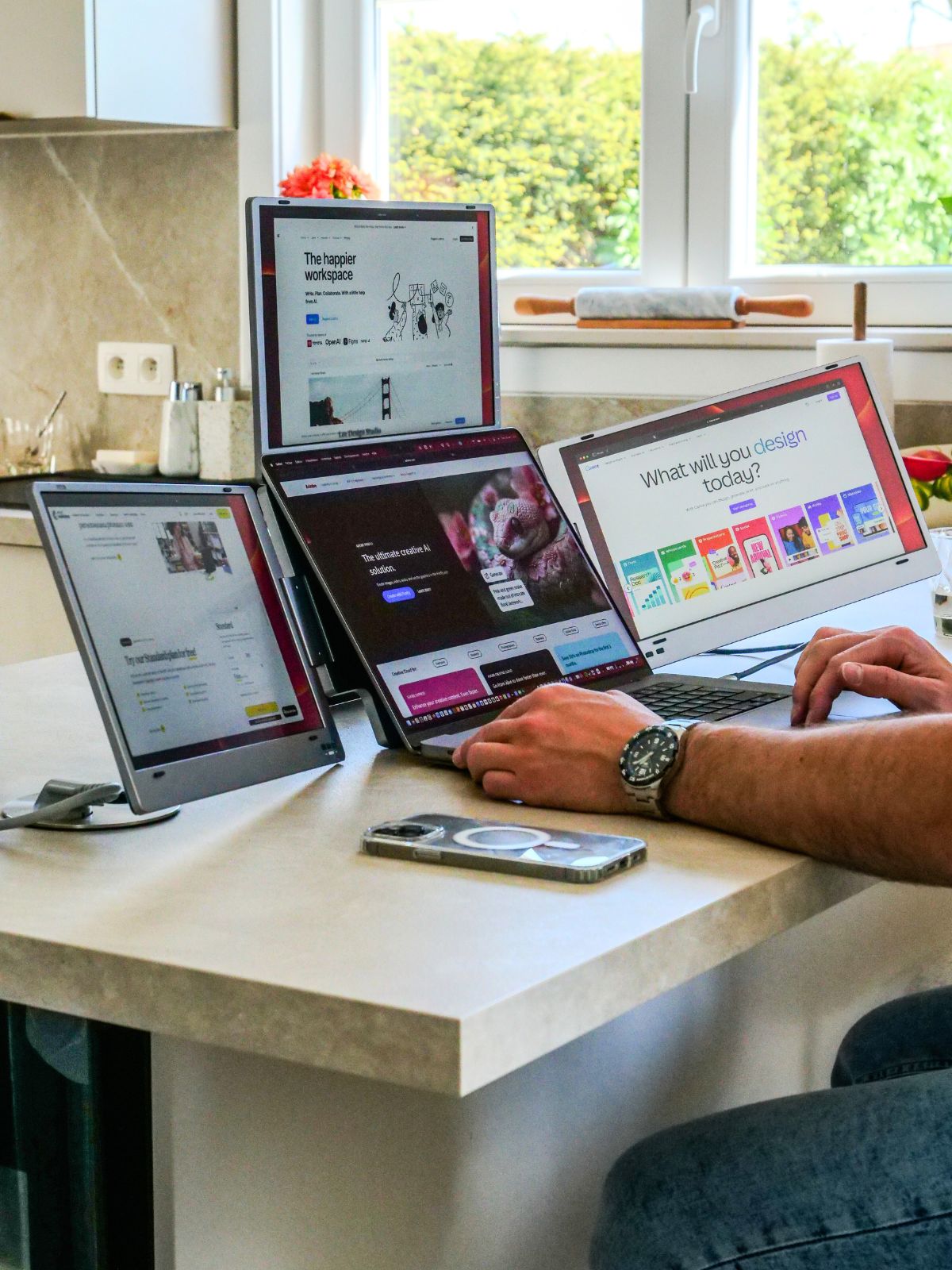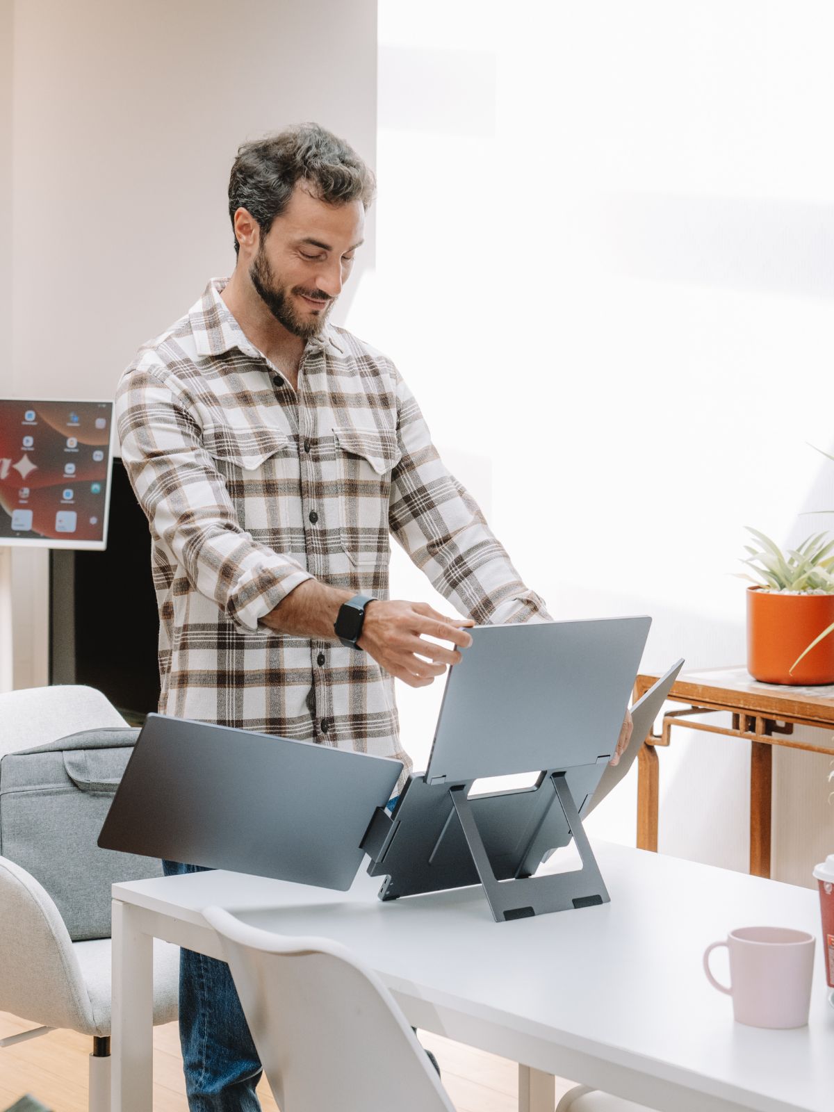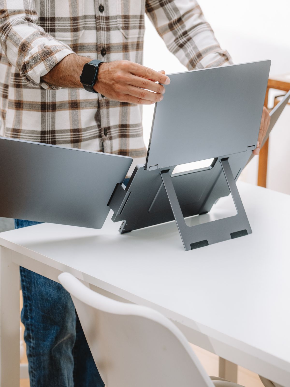 Working with the Tripple Boost setup for a while now and very much like it! It’s a great addition to productivity and easy to fold when the use is not required. Why not 5 stars? The driver installment is a pain, in my mind a pc, mac AND other mobile devices need to be able to work with the monitors seamlessly. Unfortunately my Ipad Pro (at the moment) cannot work with the monitors.