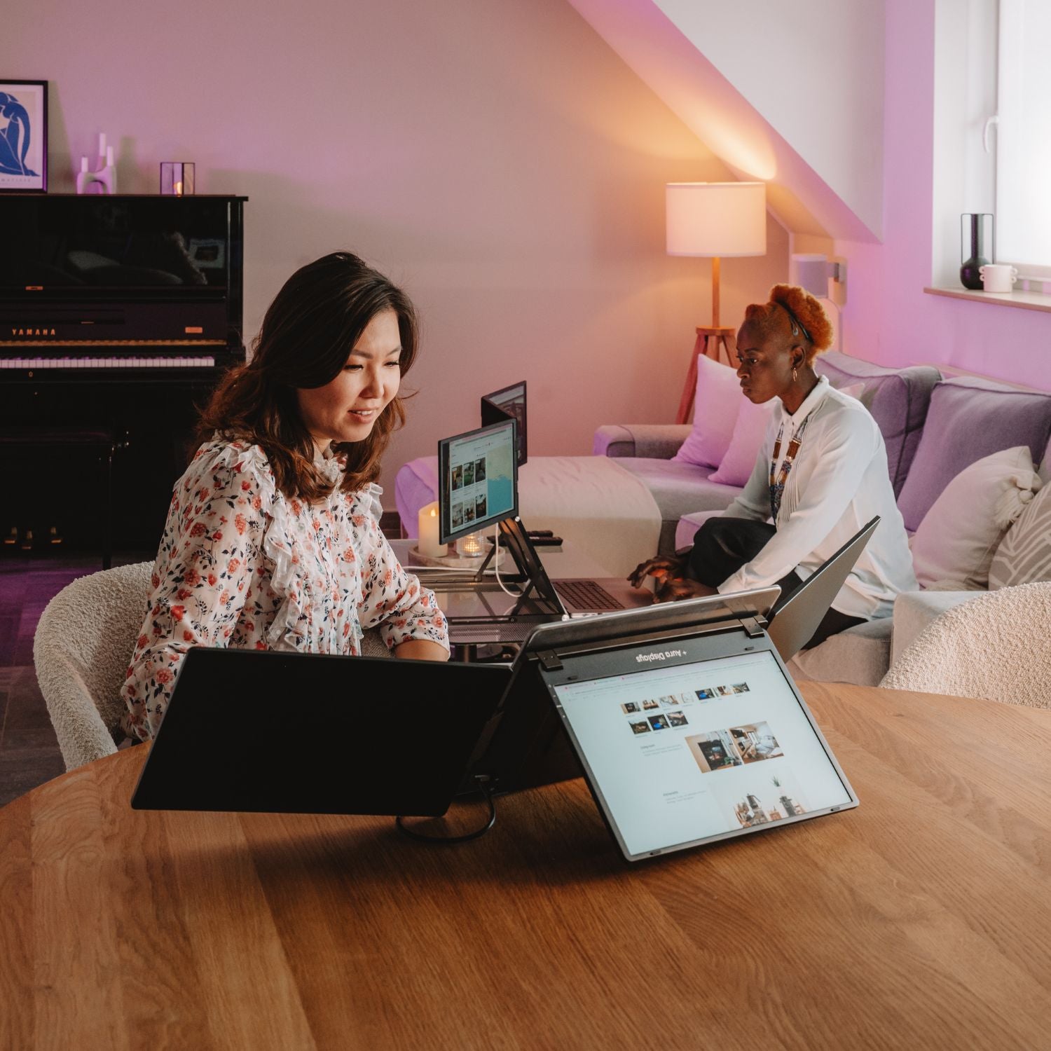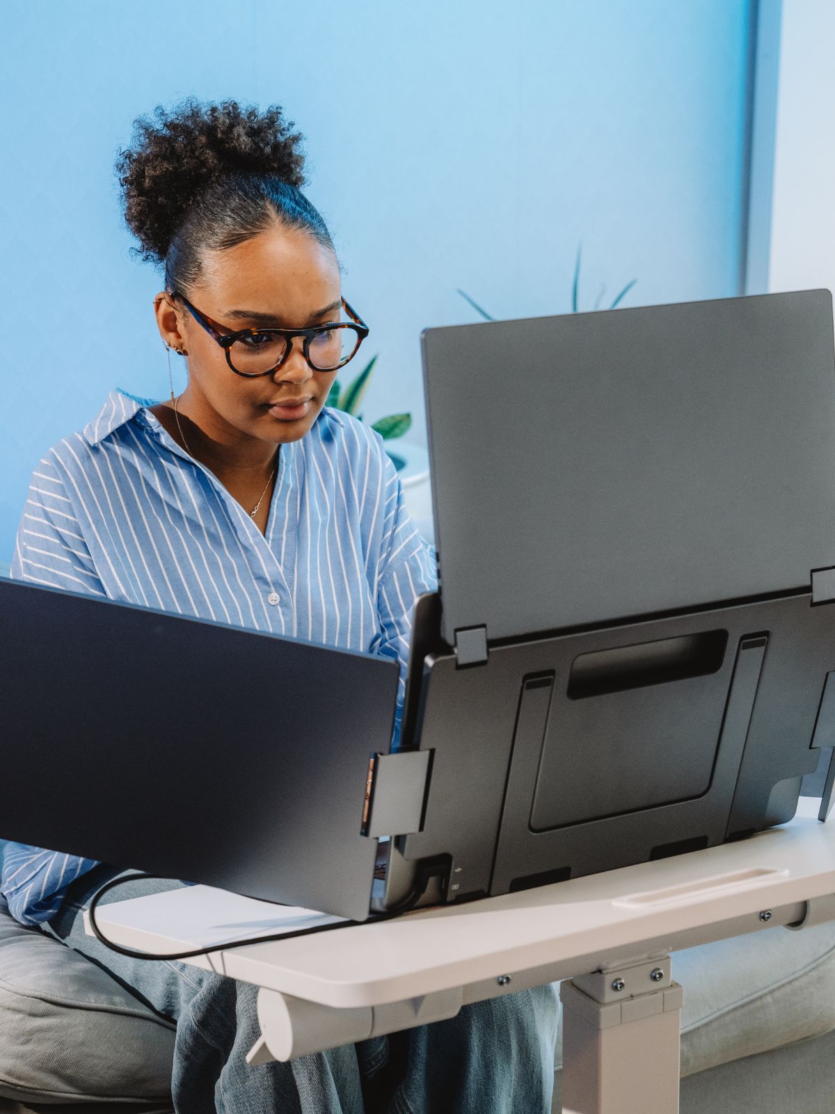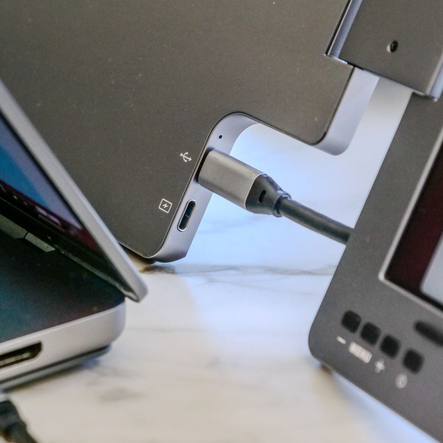 A single USB-C cable connected to your laptop is all it takes to power and run the displays. For everyday use, no additional power is required¹.