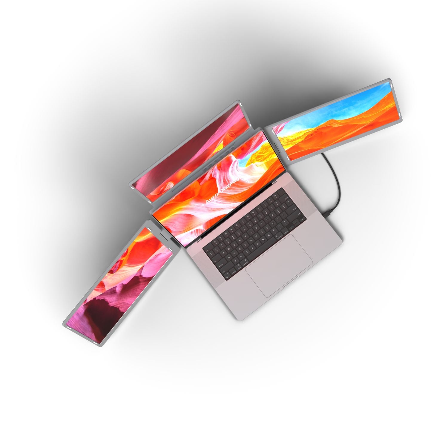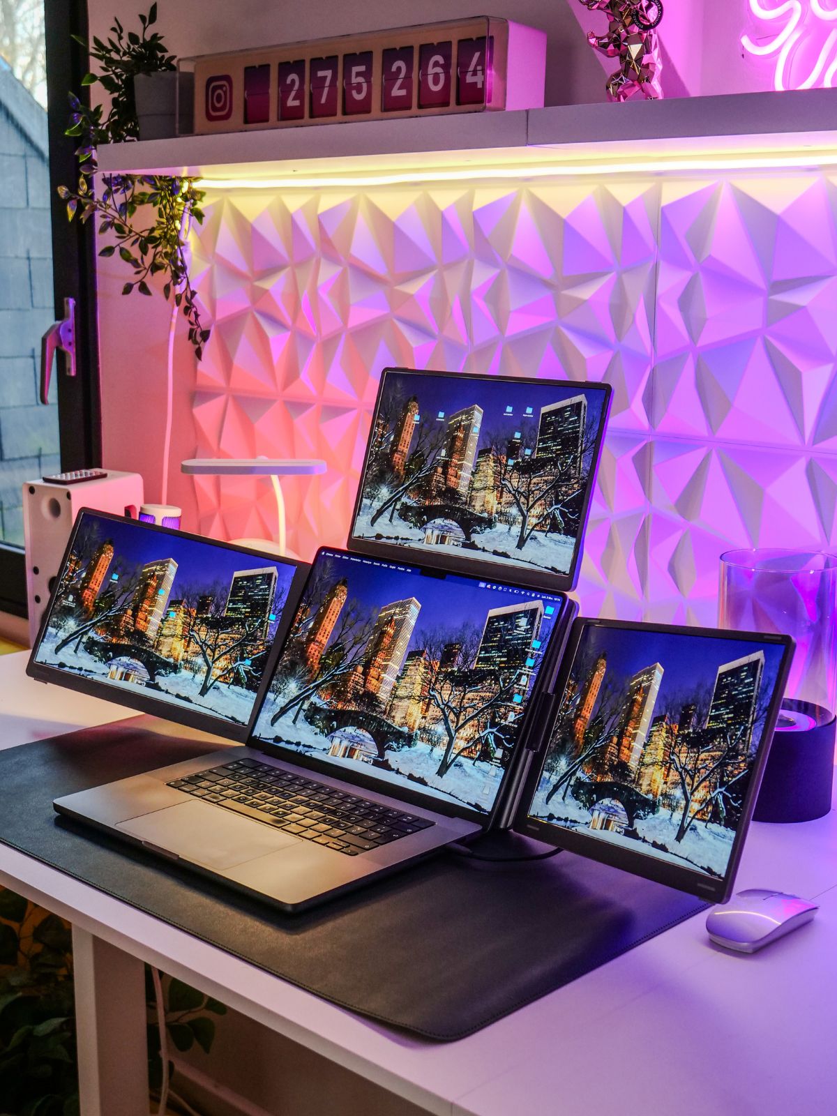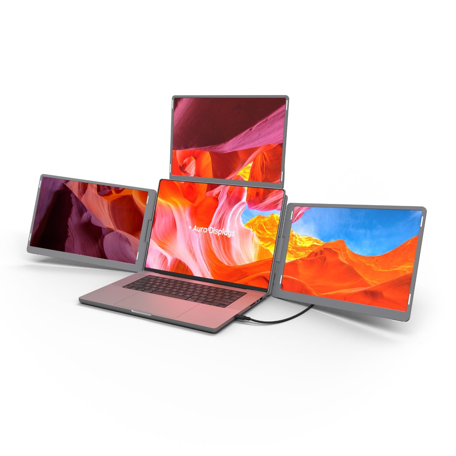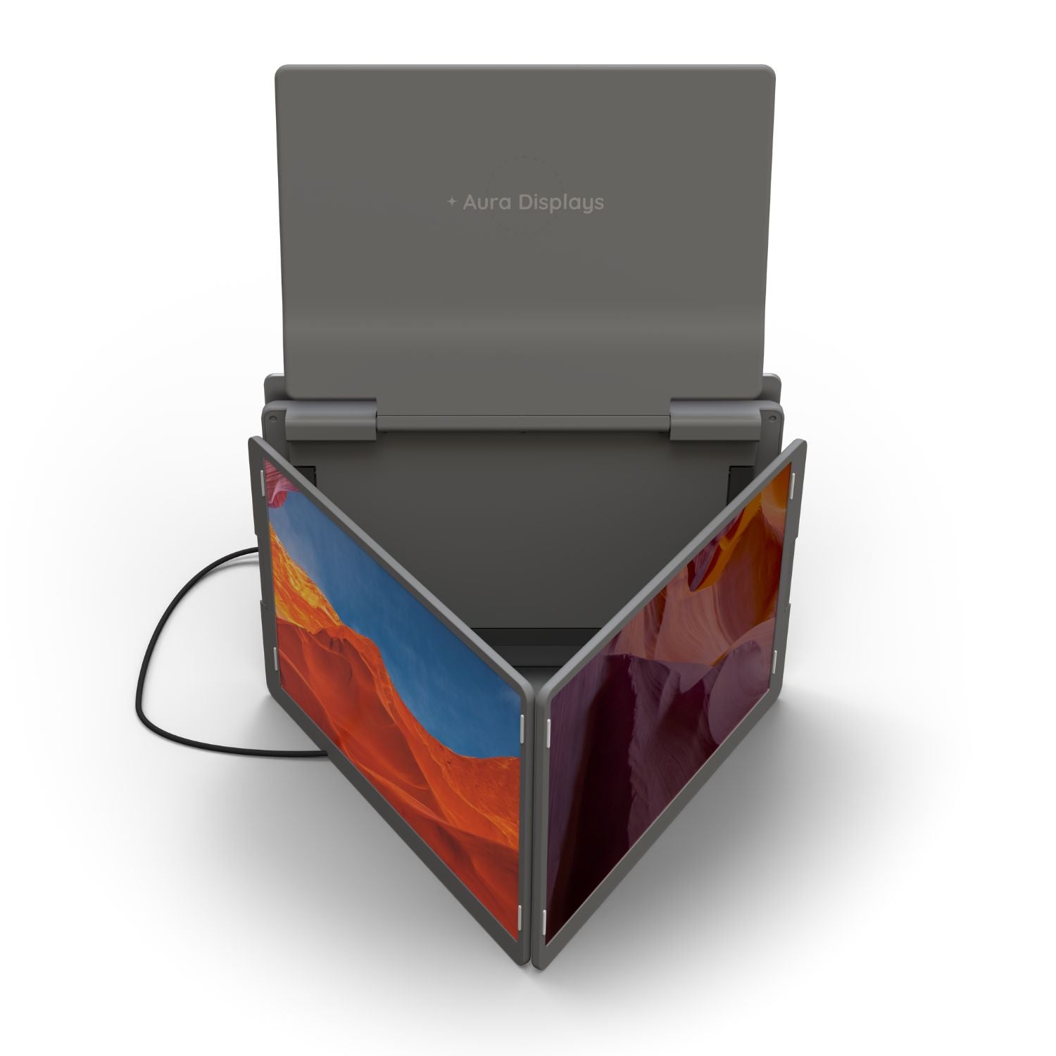 The Triple Go (Gen 3) is a remarkably immersive, laptop dedicated, portable monitor system, meticulously crafted by Aura Displays ✦